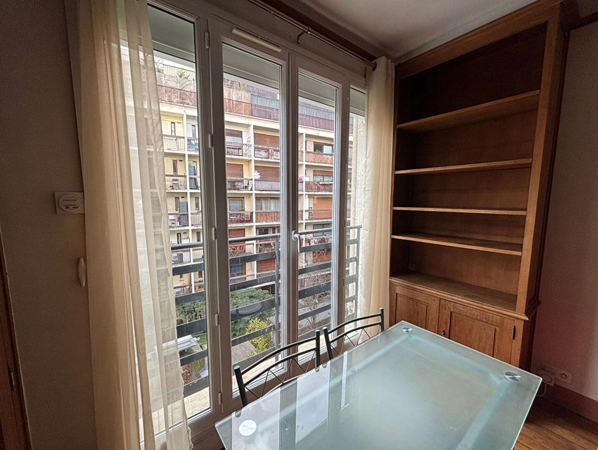 Lumineux et au calme, il bénéficie d'une vue dégagée sur un jardin et d'une grande baie vitrée équipée de double vitrage et d'un volet roulant en aluminium.