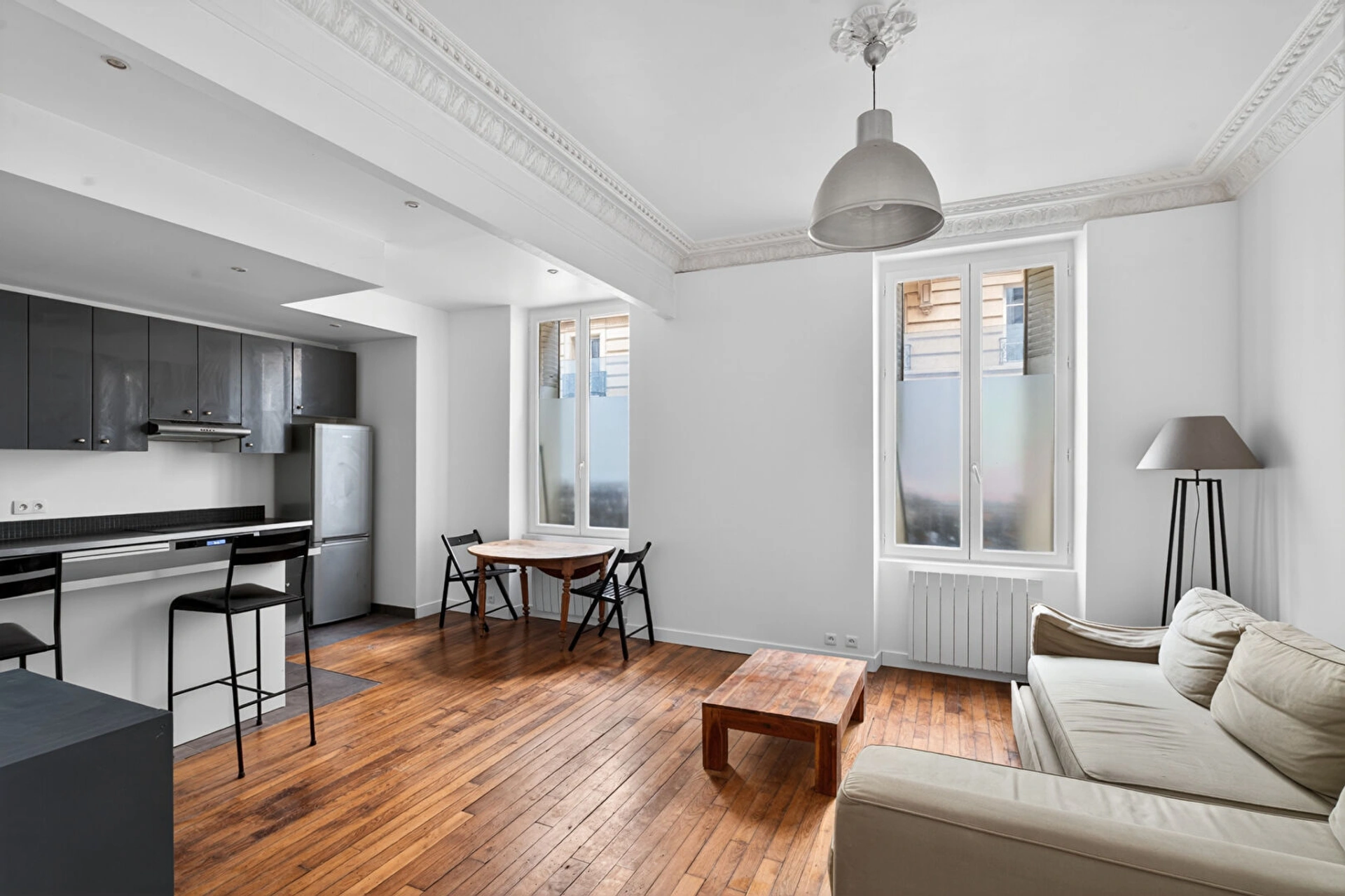 Situé dans le quartier de la mairie du 18ème, secteur très commerçant et recherché, cet appartement vous séduira par ses beaux volumes, son calme et son agencement optimisé.